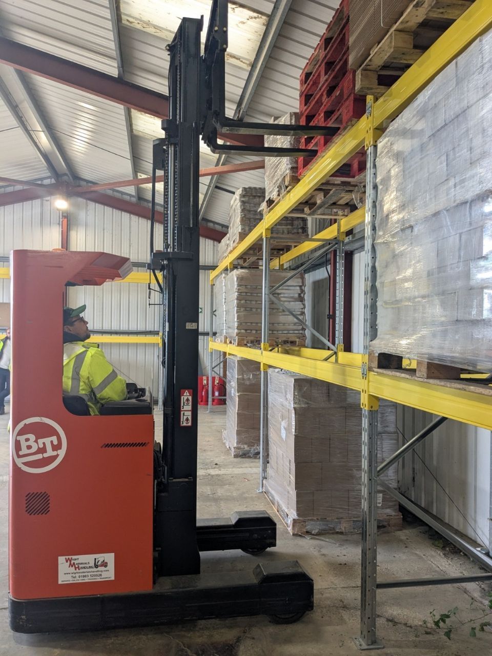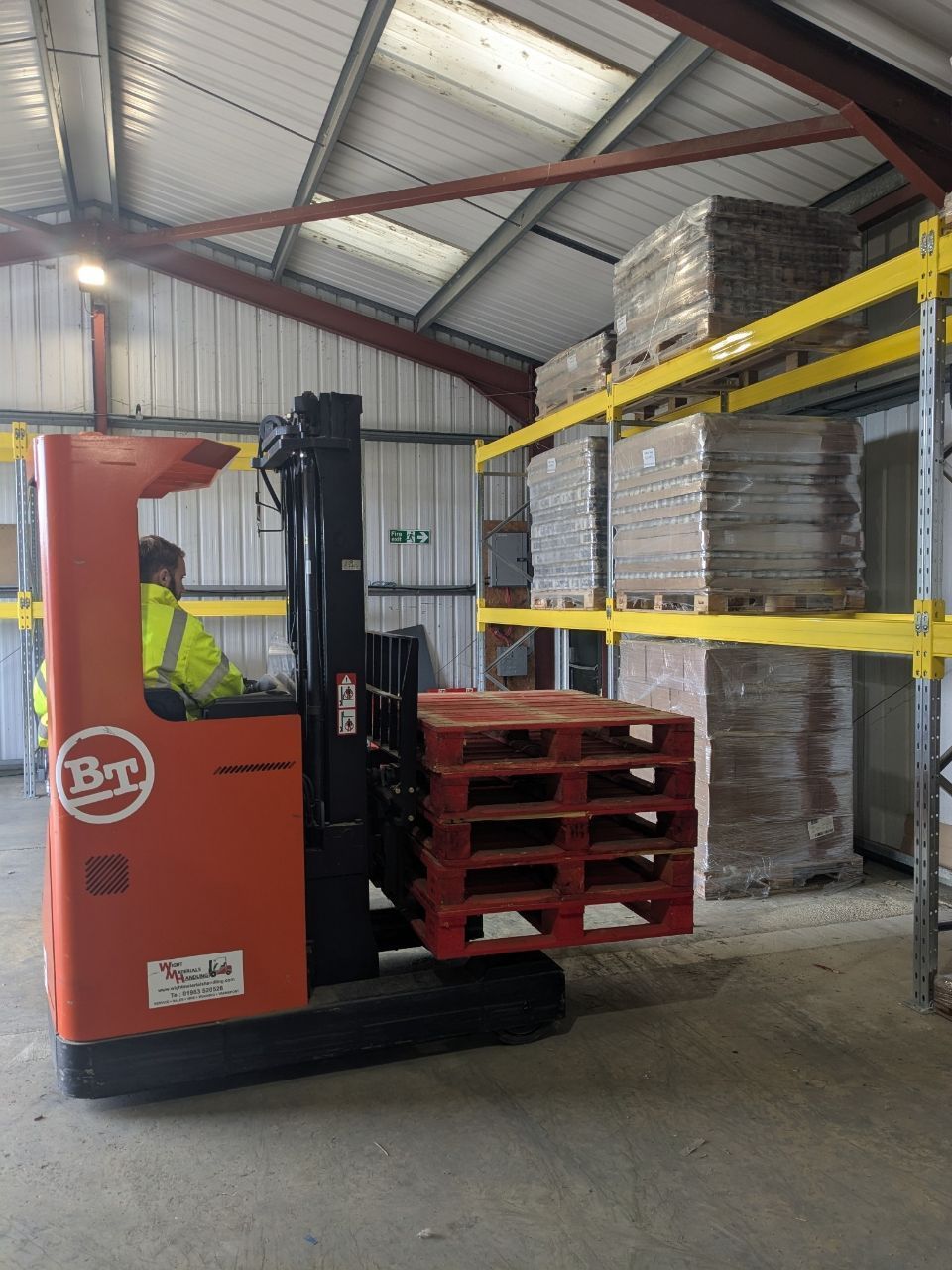 On-site forklift and reach truck refresher training for staff at The Garlic Farm on the Isle of Wight.