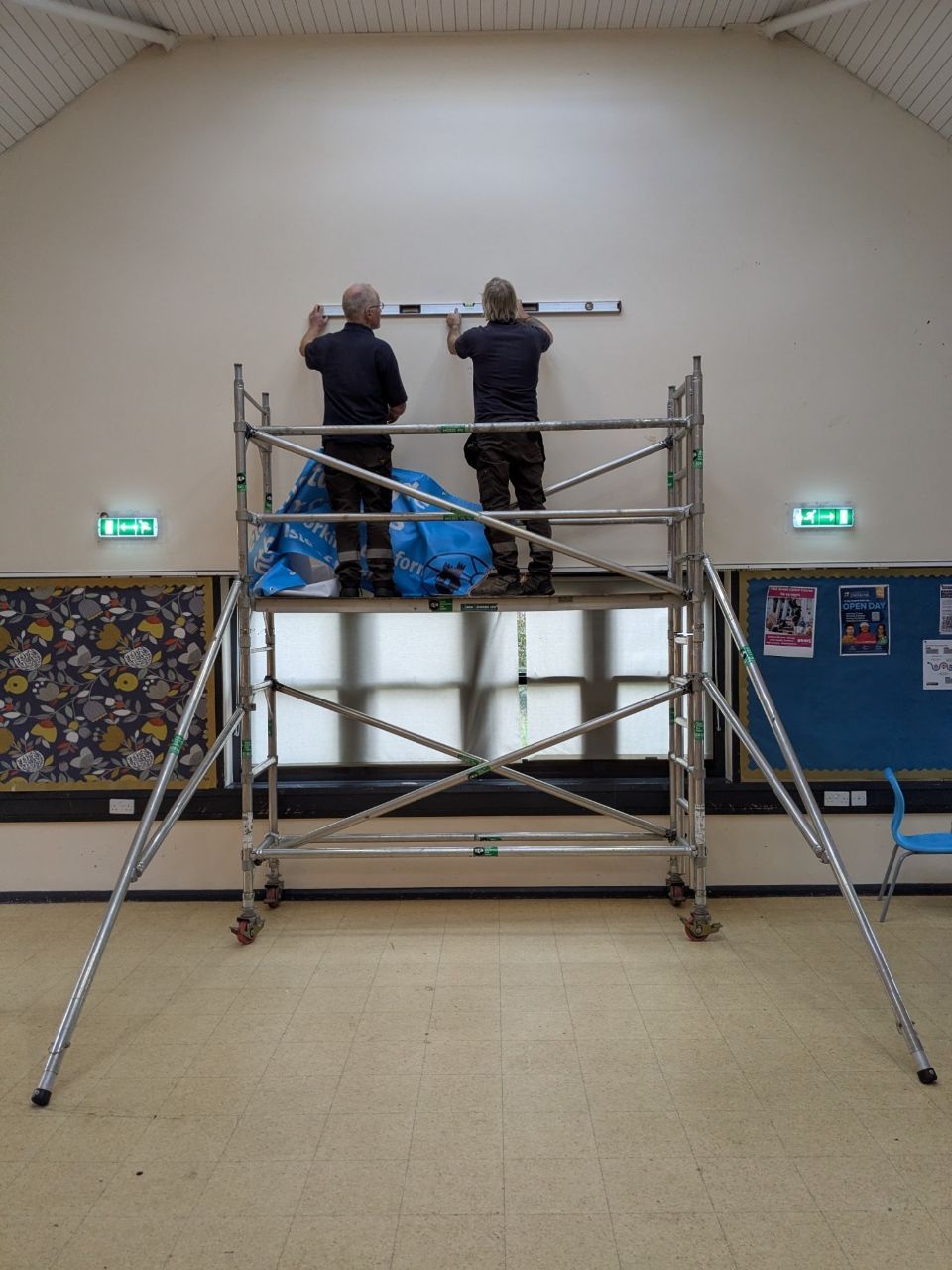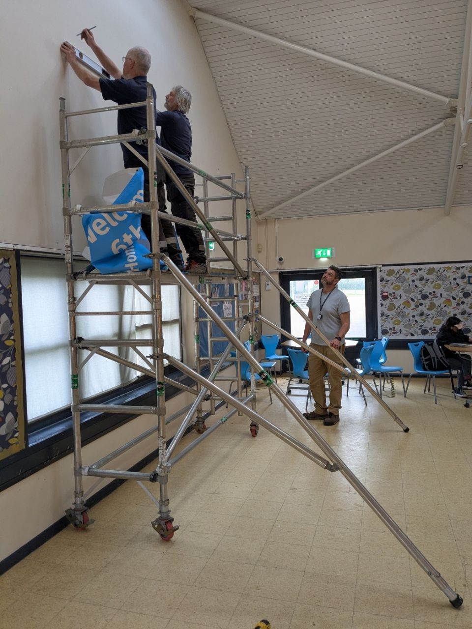 The team were preparing to install a high-level banner welcoming students to the Sixth Form campus, so it was the perfect opportunity to run a practical, hands-on session on safe tower use. Mobile scaffold towers are incredibly useful pieces of equipment, but only when they’re built, moved and used correctly. A small mistake at height can have serious consequences, so proper training is essential for schools, caretakers, and facilities teams.