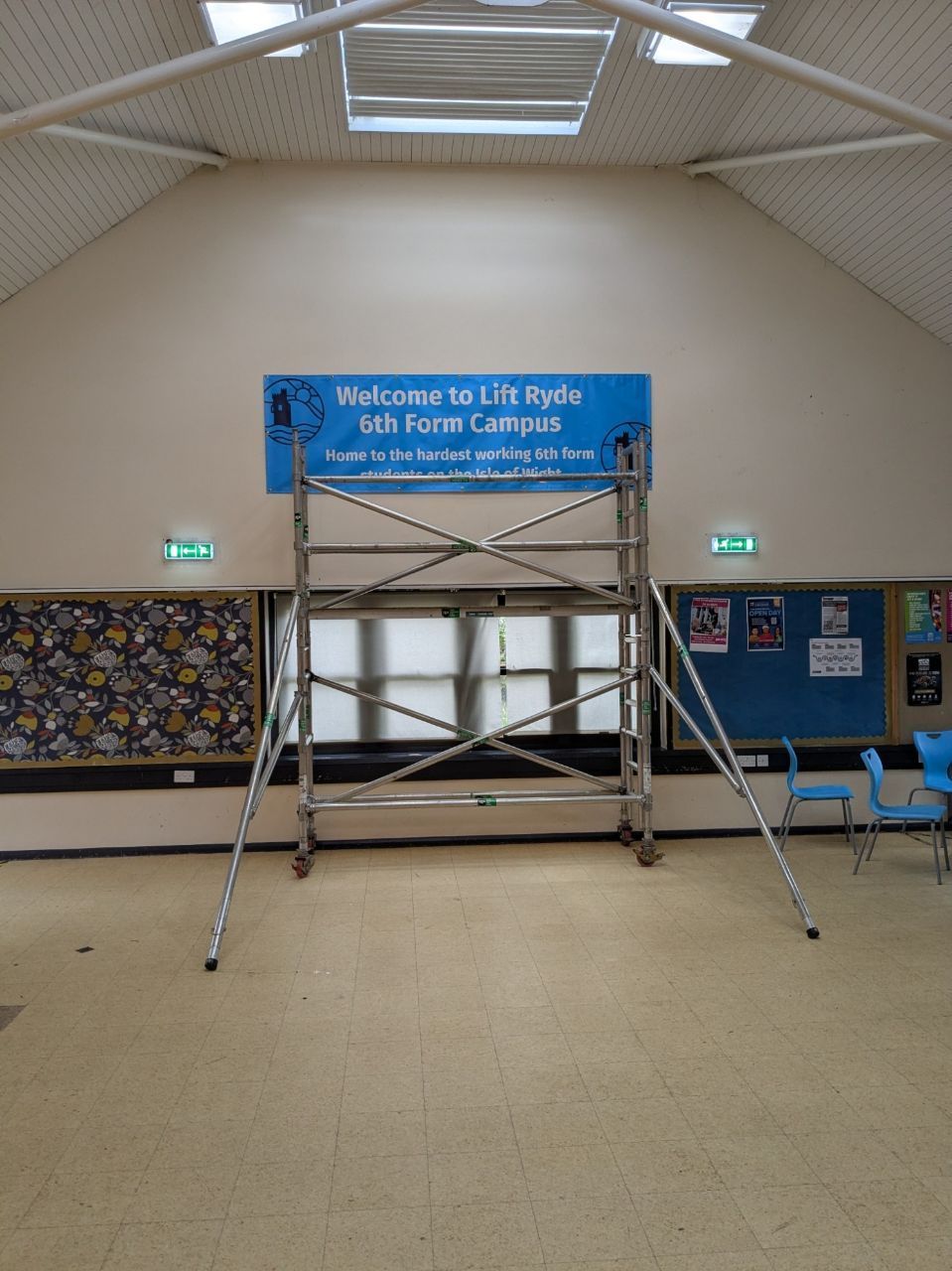 I spent the day at Lift Schools Ryde, delivering Mobile Scaffold Tower training to two members of staff who were putting up a new banner at the Sixth Form campus. It’s always a pleasure working with organisations that have a strong sense of community, and Lift Schools certainly fits that description.